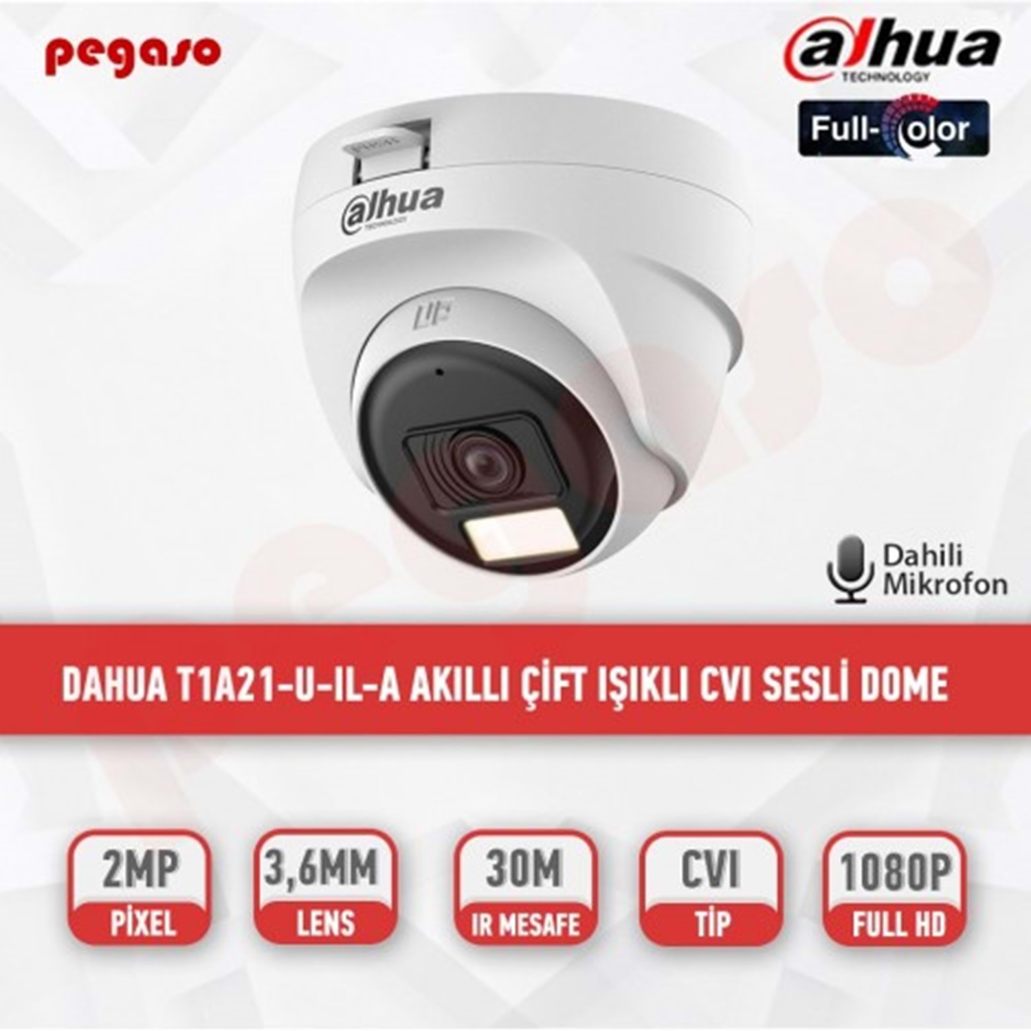 DAHUA DH-HAC-T1A21-U-IL-A 2MP Akıllı Çift Işık 25 Metre HDCVI Dahili Mikrofon Sab