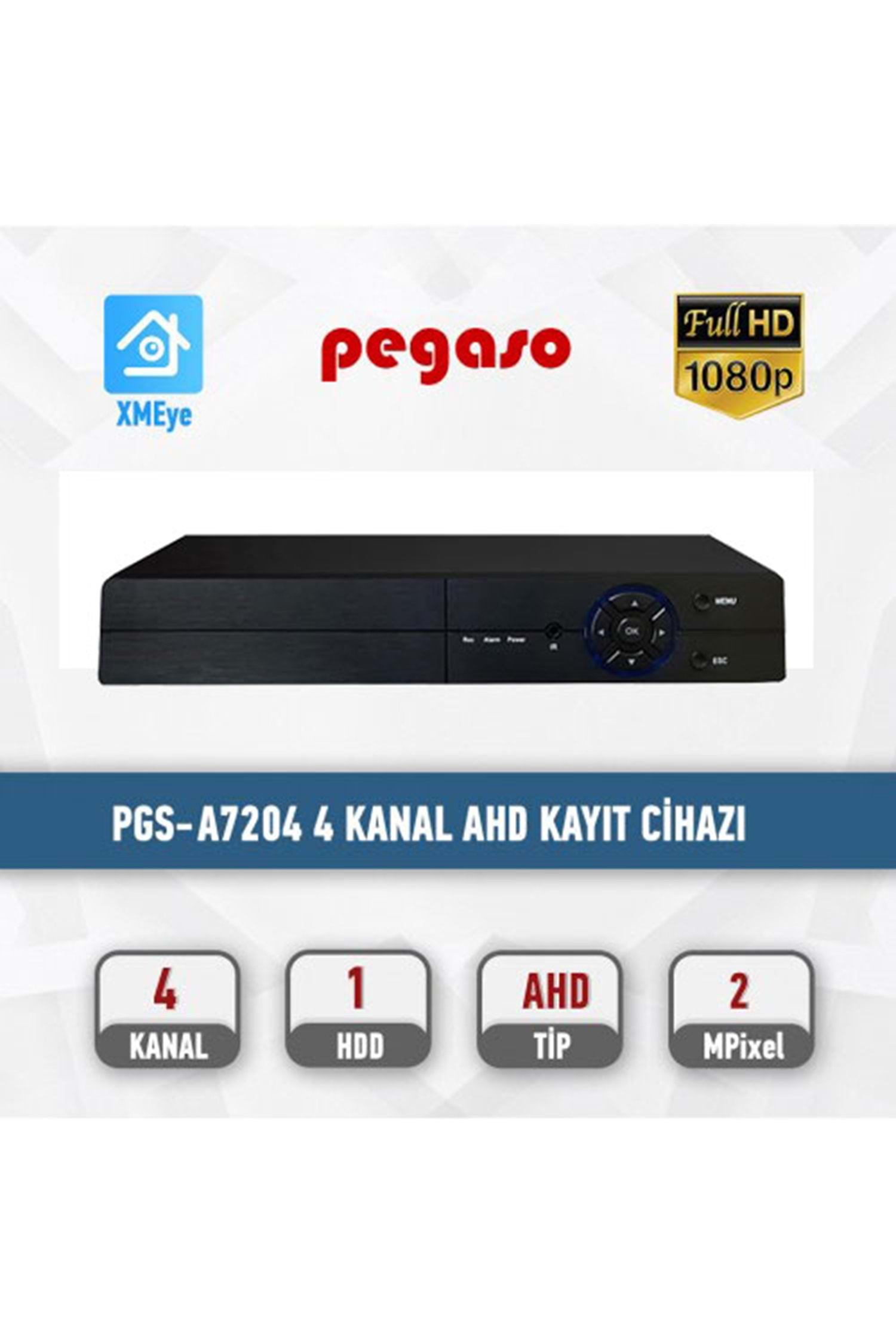PEGASO PGS-A7204 4 KANAL H.265 1080N 5 IN 1 AHD-IP-HDTVI-HDCVI-ANALOG KAYIT C